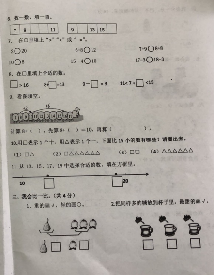 2021成都市金牛区一年级上册数学期末试卷(图片版)(2)