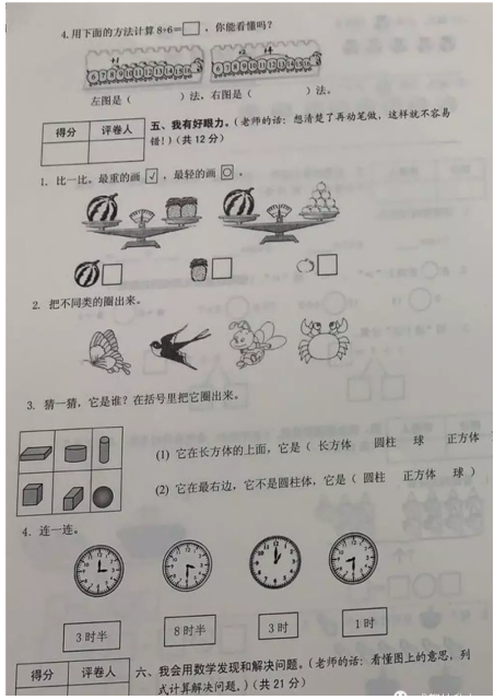 2020成都市青羊区一年级上册数学期末试卷(图片版)(3)