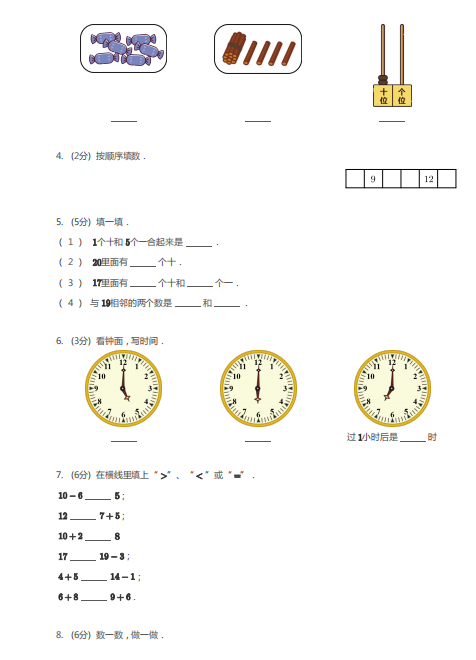 2020广州市黄埔区一年级上册数学期末试卷(图片版)(2)