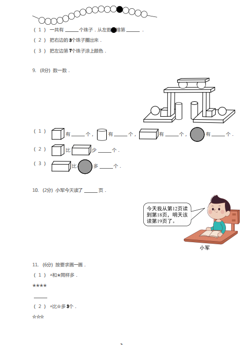 2020广州市黄埔区一年级上册数学期末试卷(图片版)(3)