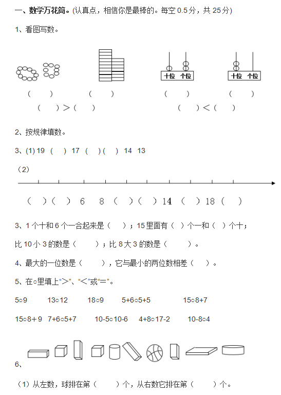 下载链接:2022年北师大版小学一年级数学上册期末试卷二(下载版)
