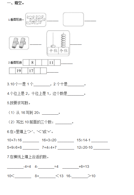 2022年人教版小学一年级数学上册期末试卷八(图片版)