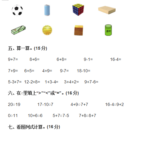 2022年苏教版小学一年级数学上册期末测试五(图片版)(3)