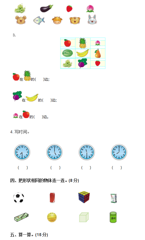 2022年北师大版小学一年级数学上册期末试卷六(图片版)(2)