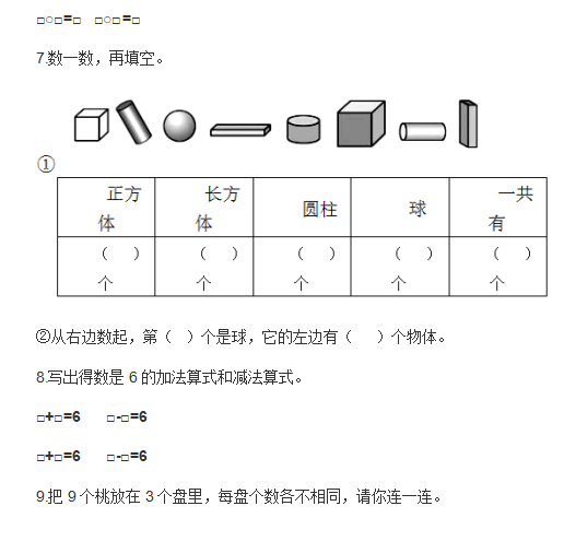 2022年人教版小学一年级数学上册期末试卷十二(图片版)(2)