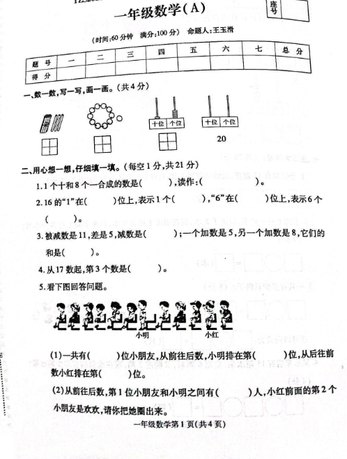 奥数网整理了关于2022年人教版一年级上册数学期末测试卷十四(下载版),希望对同学们有所帮助,仅供参考。