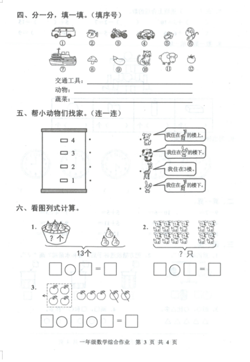 2022年北师大版一年级上册数学期末测试卷六(图片版)(3)