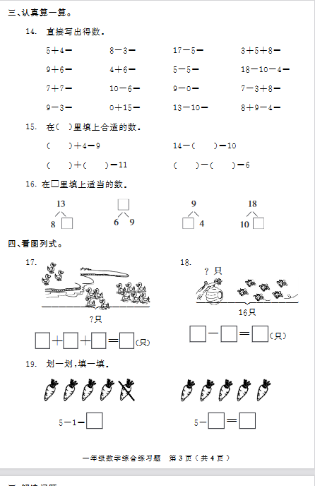 2022年北师大版一年级上册数学期末测试卷十(图片版)(3)