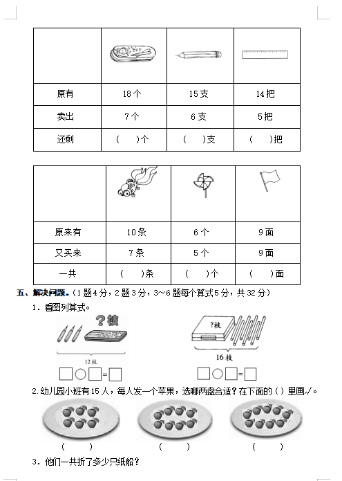 2022年西师大版一年级上册数学期末测试卷三(图片版)(3)
