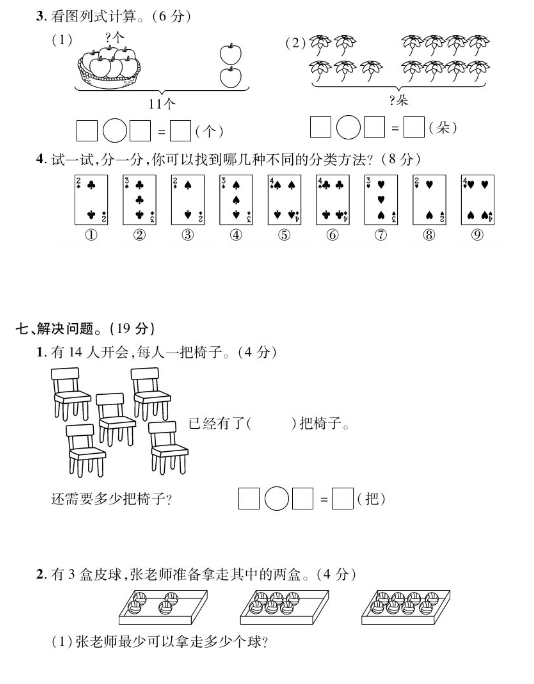 2022年西师大版一年级上册数学期末测试卷五(图片版)(3)