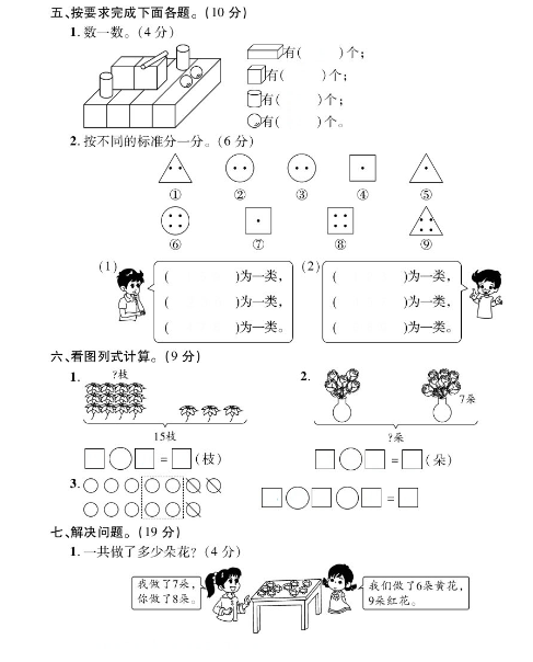 2022年西师大版一年级上册数学期末测试卷六(图片版)(3)