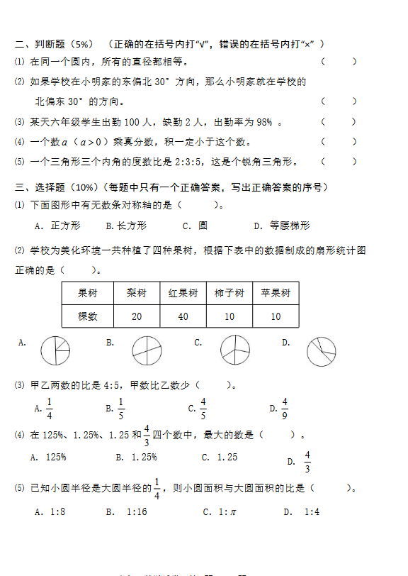 2022-2023天津市河东区六年级上数学期末卷(图片版)(2)