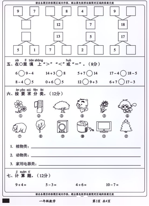 2022-2023安徽滁州南谯区一年级上数学期末卷(图片版)(3)