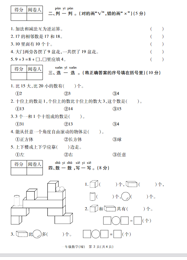 2022-2023河南周口鹿邑县一年级上数学期末卷(图片版)(2)