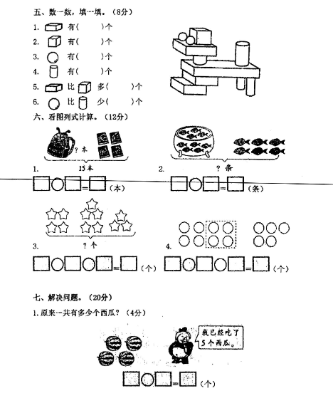 2022-2023甘肃庆阳镇原县一年级上数学期末卷(图片版)(3)