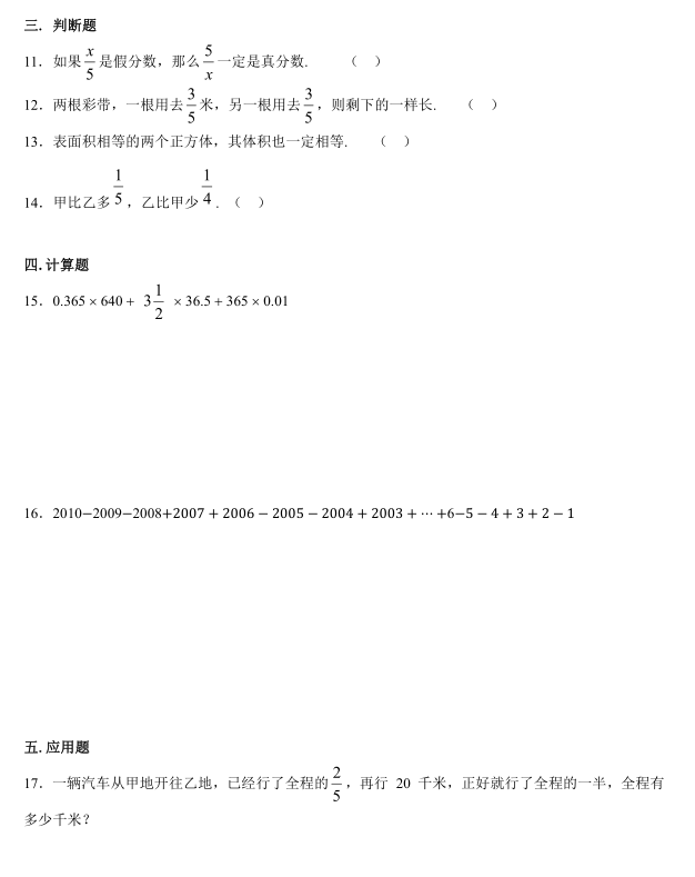 2020年广东省广州市小学升初中数学真题卷二(图片版)(2)