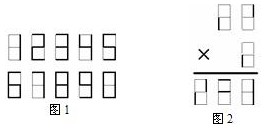3. 电子数字0~9如图1所示,图2是由电子数字组成的乘法算式,但有一些模糊不清,请将图2的电子数字恢复,并将它写成横式形式: 28×8=224 。