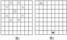 3. 国际象棋中“马”的走法如图1所示,位于○位置的“马”只能走到标有×的格中,类似于中国象棋中的“马走日”。如果“马”在8×8的国际象棋棋盘中位于第一行第二列(图2中标有△的位置),要走到第八行第五列(图2中标有★的位置),最短路线有 条。(12)