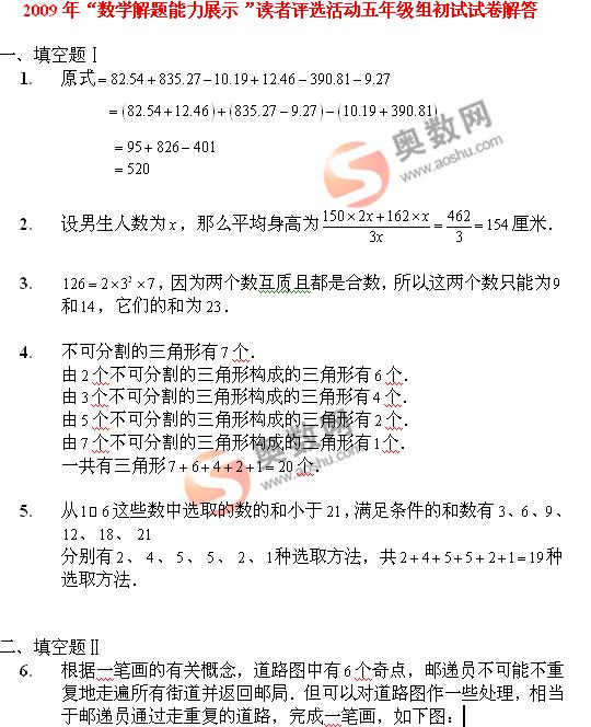 2009年“解题能力展示(迎春杯)”五年级真题解析