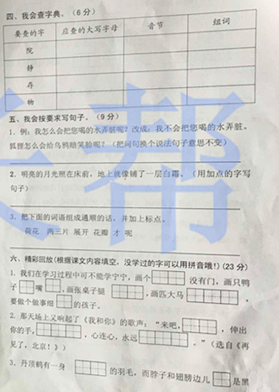 2015至2016合肥包河区二年级语文期末试卷 (2)