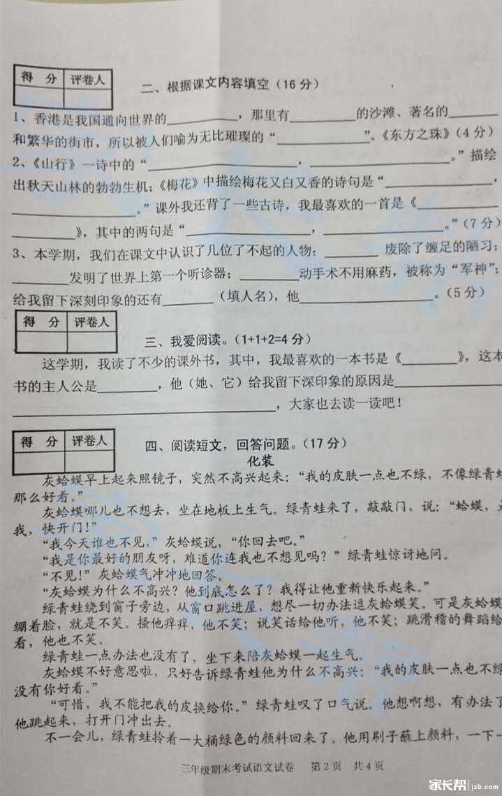 2015至2016合肥庐阳区三年级语文期末试卷 (2)