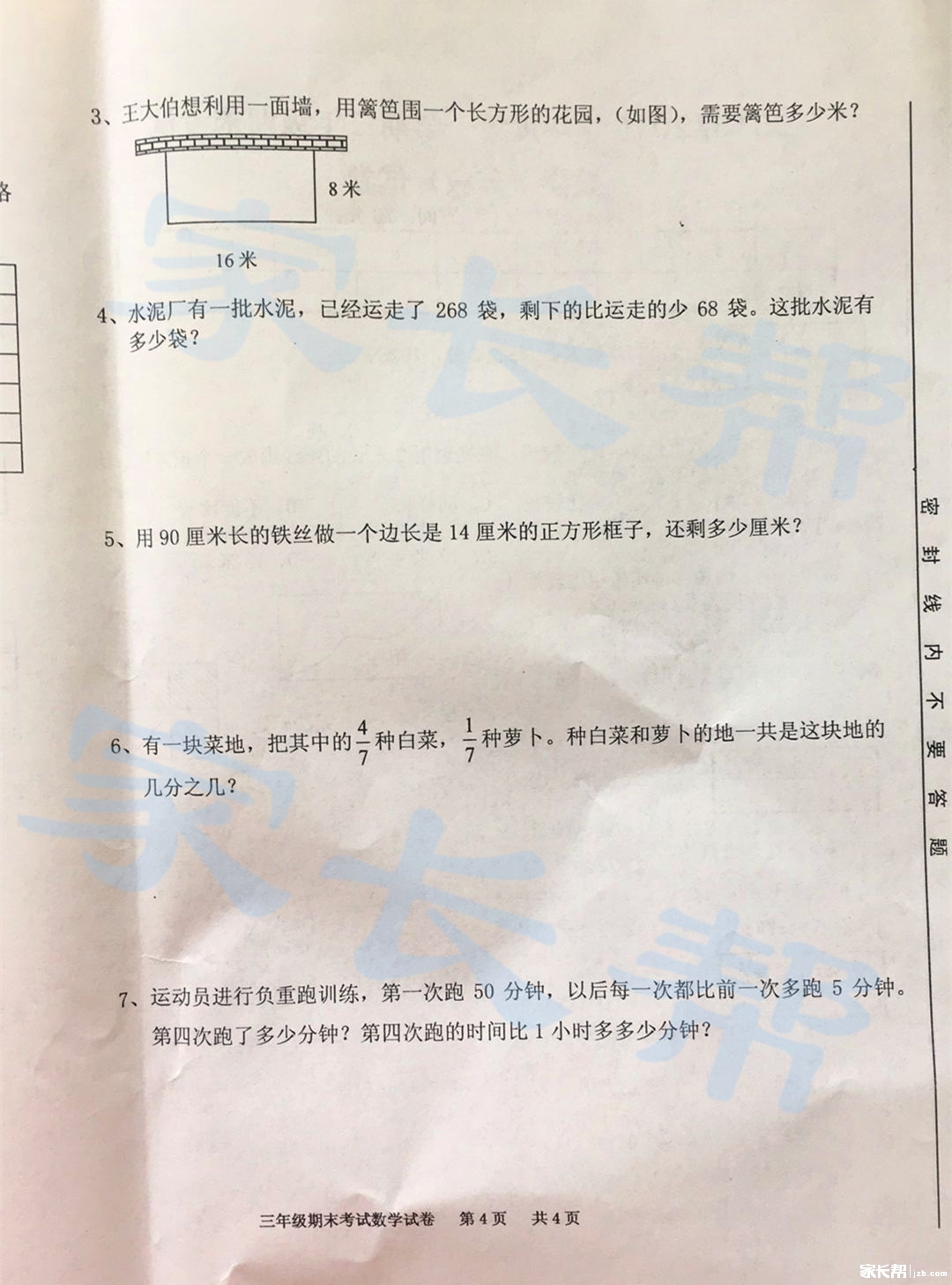 2015至2016合肥蜀山区三年级期末数学卷 (3)