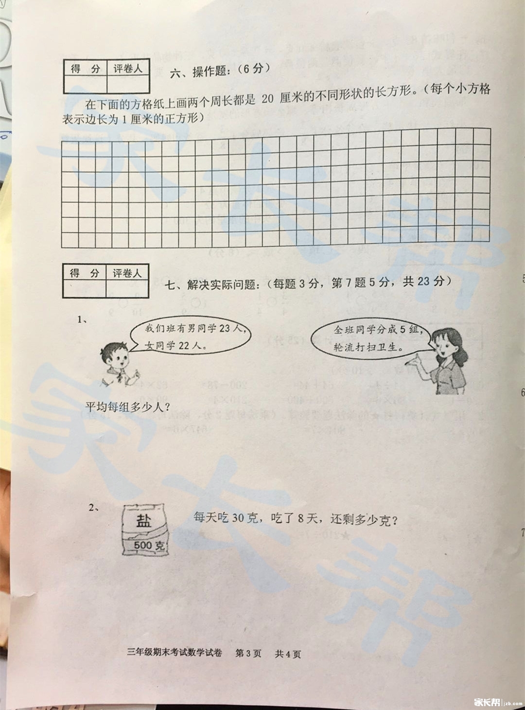 2015至2016合肥蜀山区三年级期末数学卷 (4)