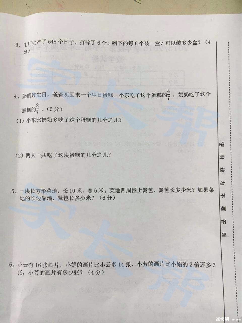 2015至2016合肥庐阳区三年级数学期末试卷 (4)