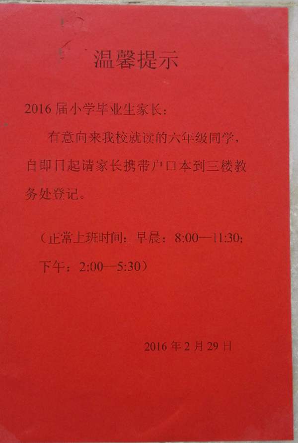 从家长口中获悉,2016合肥瑶海区五十五中小升初开始报名。