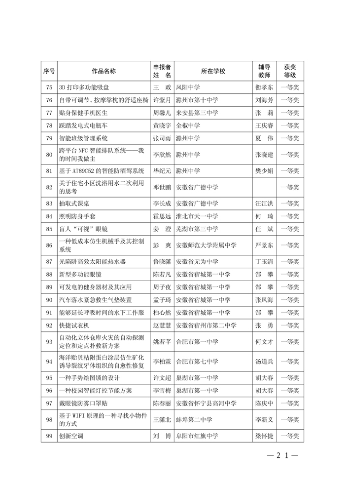 2016年安徽省青少年科技创新大赛获奖名单(21)