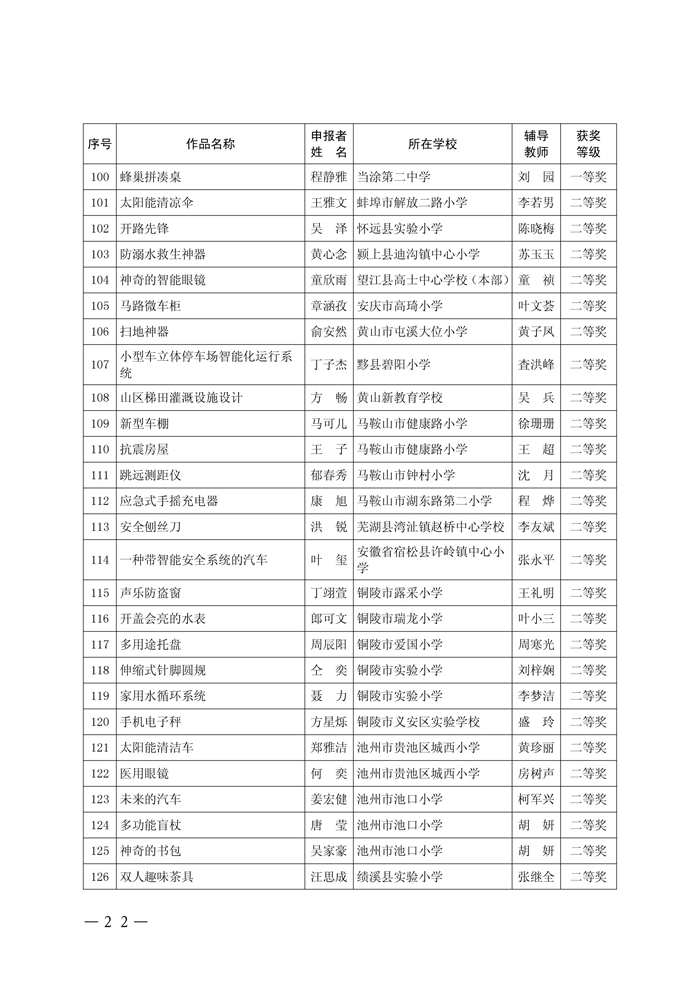2016年安徽省青少年科技创新大赛获奖名单(22)