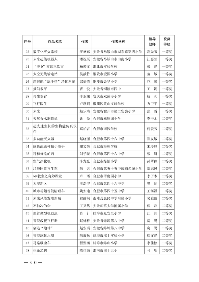 2016年安徽省青少年科技创新大赛获奖名单(30)
