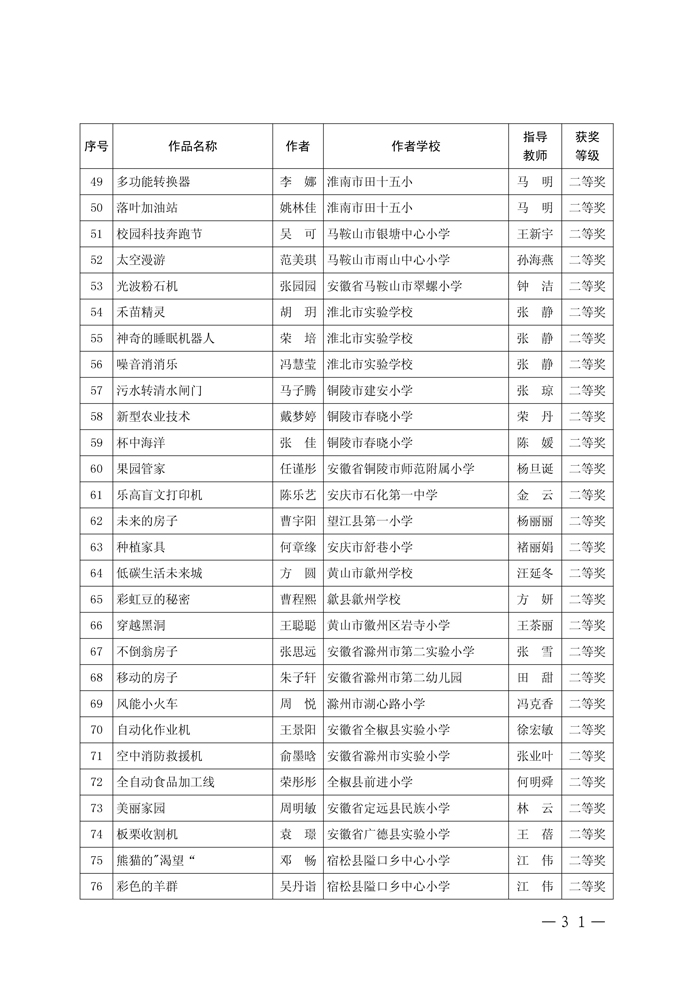 2016年安徽省青少年科技创新大赛获奖名单(31)