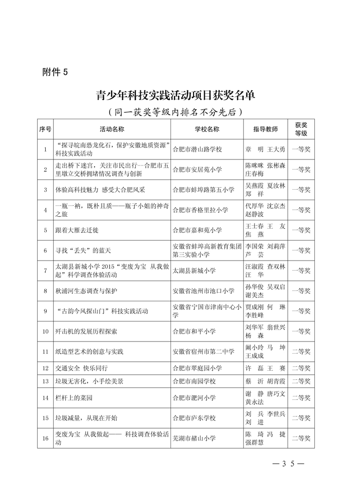 2016年安徽省青少年科技创新大赛获奖名单(35)