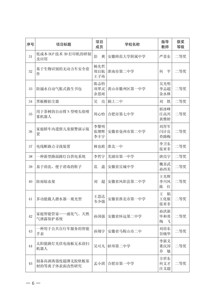 2016年安徽省青少年科技创新大赛获奖名单(4)