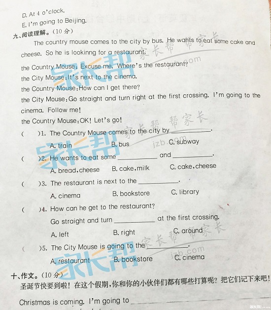 2015庐阳区海棠花园小学六年级期中英语试卷 (4)