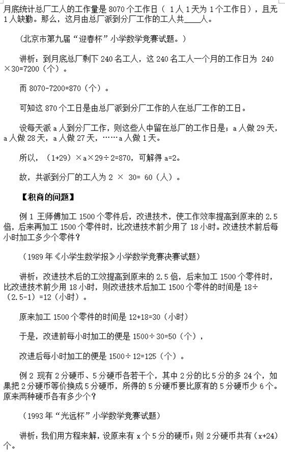 2017年合肥奥数解题思路讲解:一般应用题(2)