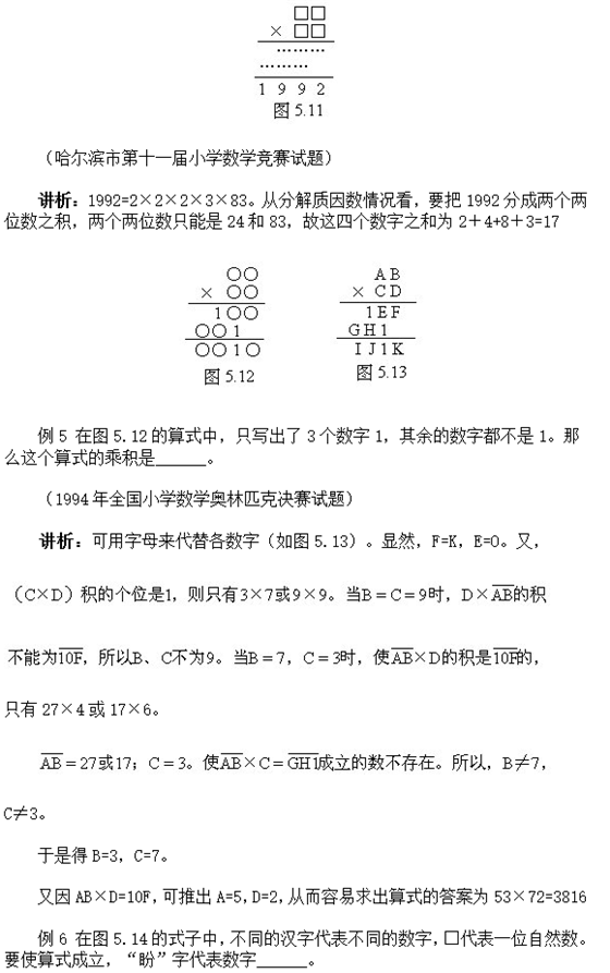 2017年合肥奥数解题思路讲解:算式谜(5)