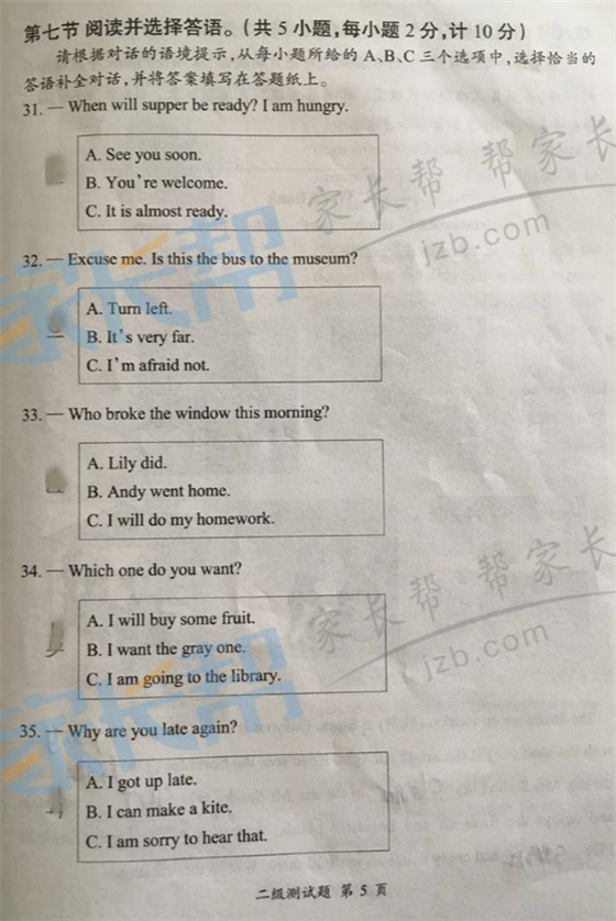 2016年秋季习思英语等级考试二级真题 (7)