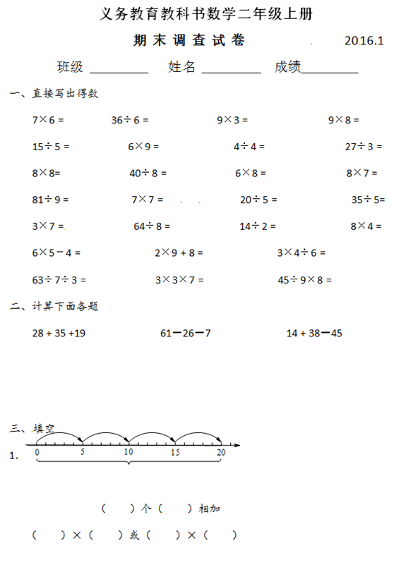 合肥小学二年级数学上册期末试卷(五)