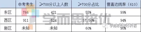 2016年中考成绩的揭晓,合肥市五十中学西校高分段考生云集,750分以上106人,其中780分以上2人,合肥市前100名11人,合肥市前500名51人,合肥市前1000名96人,可谓十分天下有其一!西校2016届毕业生966人,730分以上293人,比例高达30.33%(合肥市比例为15.4%);700分以上524人,比例高达54.25%(合肥市比例为34.8%);普高达线人数911人,达线率为94.31%.(五十中西区)2016年一六八指标到校名额164人,最低分732分。