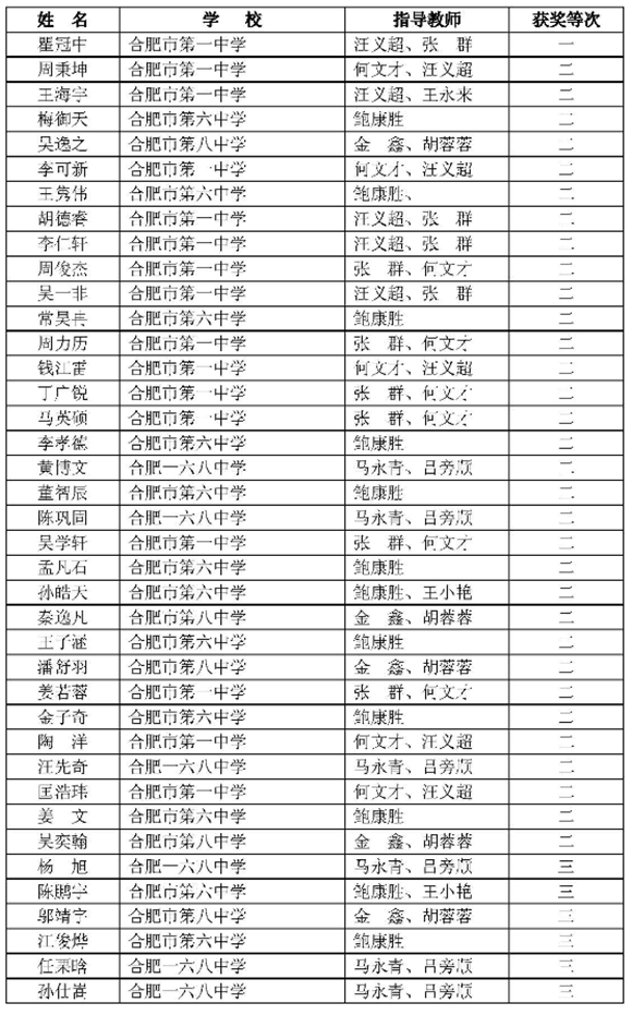 2016年第三十三届合肥市信息学市赛高中组获奖名单(2)