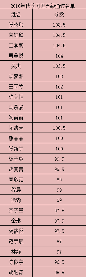 2016年秋季习思英语四级五级通过情况分析及名单(11)
