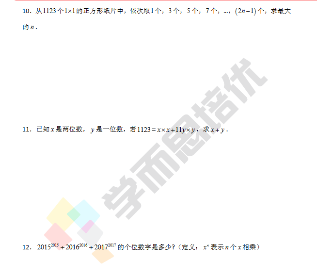 备战2017合肥五年级希望杯(1.12) 合肥家长帮 2017-01-12 17:35:24 2017年希望杯即将拉开帷幕,初赛于3月19日(周日)举行,4月9日(周日)进行决赛。 下面我们来给大家分享备战2017合肥五年级希望杯的试题啦~快练起来吧! 【1.12试题】 >>答案请点击查看 >>备战2017合肥希望杯每日一练汇总