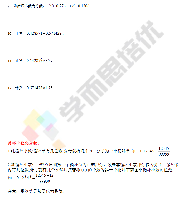2017合肥六年级希望杯每日一练:循环小数(一)