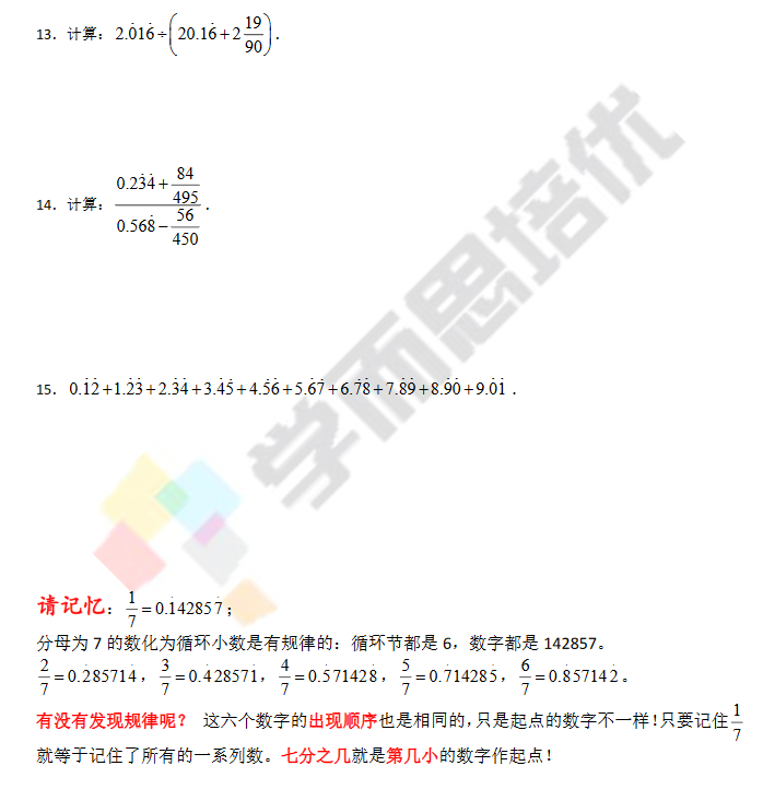 2017合肥六年级希望杯每日一练:循环小数(二)