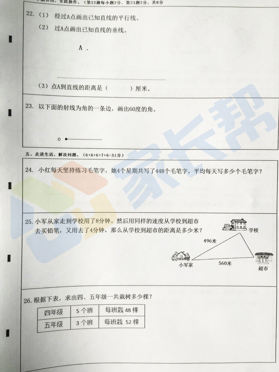 2016年合肥市小学四年级上学期期末测试卷数学(4)
