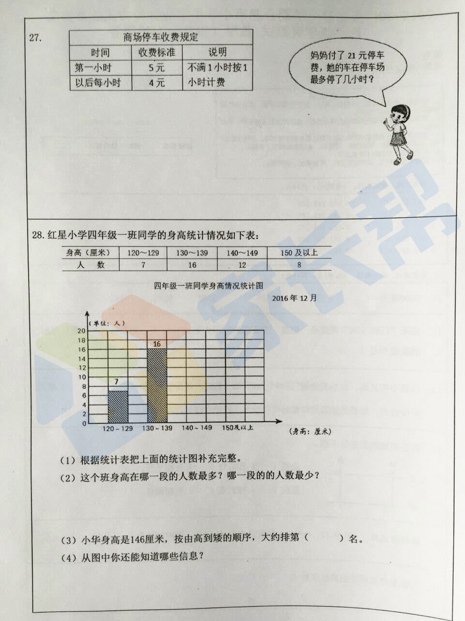 2016年合肥市小学四年级上学期期末测试卷数学(5)