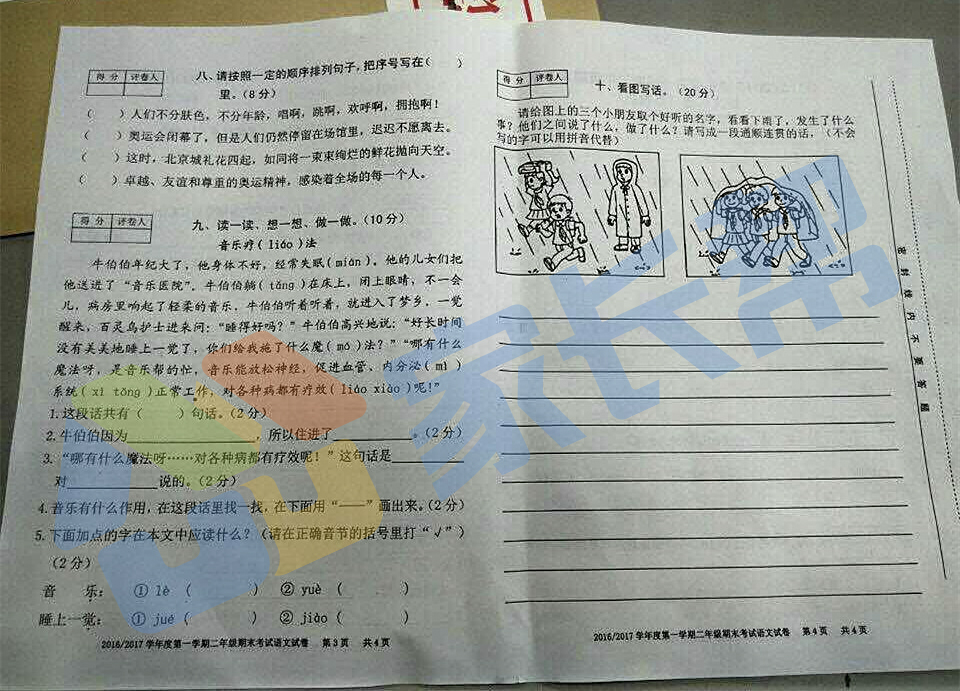 2016至2017学年上学期经开区二年级语文试卷(2)