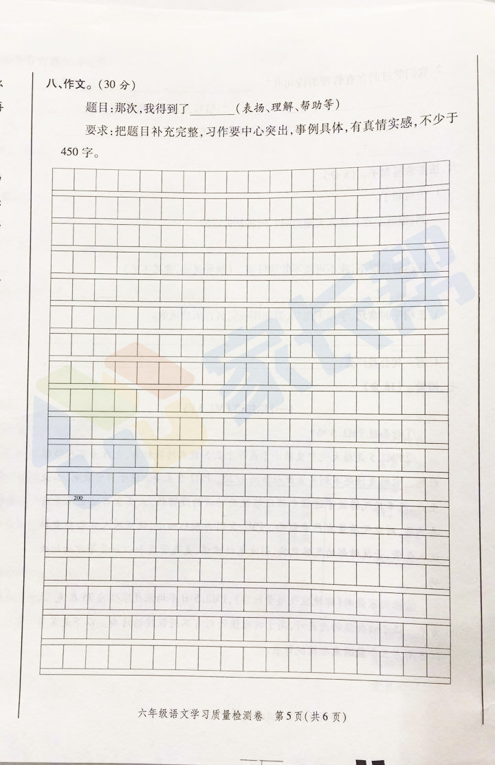2016-2017学年合肥瑶海区六年级期末语文试卷(5)